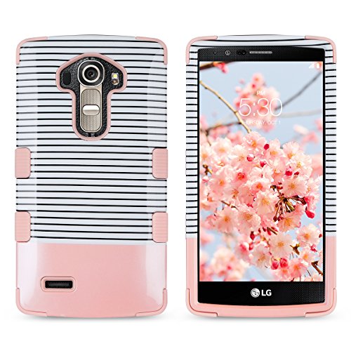 ULAK LG G4 Cover, LG G4 Custodia ibrida a protezione integrale con parte esterna in 3 strati di morbido silicone e interno rigido per LG G4 (Oro Rosa + Stripes)