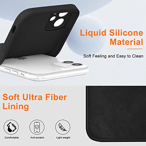 Cover Custodia per iPhone 11 con 2 Pezzi Pellicola Protettiva in Vetro Temperato,Silicone Liquido Protezione Completa in Gomma Gel Morbida con Fodera in Microfibra,Antiurto Case per iPhone11 6.1” Nero