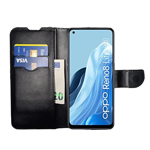 KEJI Cover Custodia Libro in Pelle Portafoglio con Supporto Flip Caso Supporto Stand Chiusura Magnetica per OPPO reno 8 lite 5G, Elegante (NERO)
