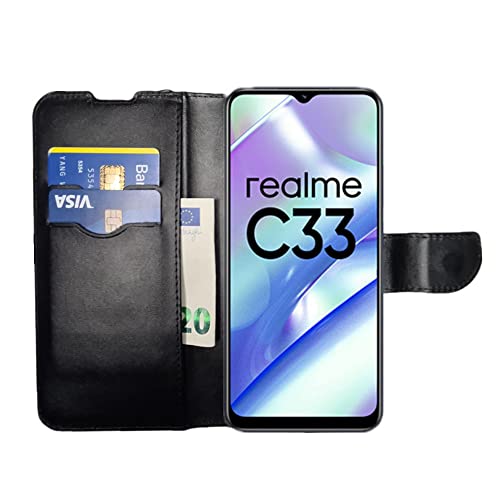 KEJI Cover Custodia Libro in Pelle Portafoglio con Supporto Flip Caso Supporto Stand Chiusura Magnetica per REALME C33 Elegante (NERO)