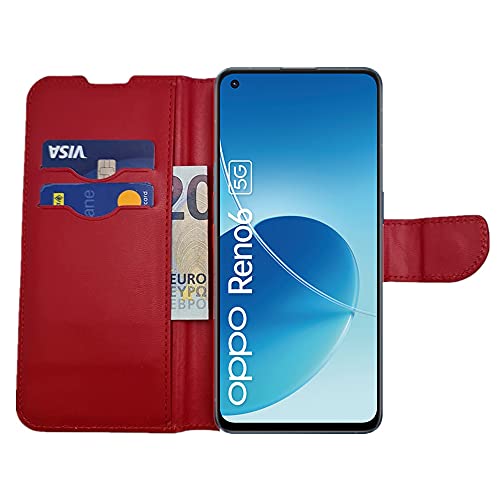 KEJI Cover Custodia per OPPO RENO 6 5G (6.43"), Cover Custodia Libro in Pelle Portafoglio con Supporto Flip Caso Supporto Stand Chiusura Magnetica OPPO RENO 6, Elegante (ROSSO)