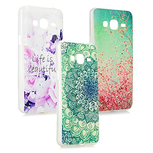 J3 2016 Cover, Custodia Morbida Trasparente TPU Silicone Flessibile Gomma Opaco - Case Antiscivolo Satinato, Ultra Sottile Cassa Protettiva per Samsung Galaxy J3 2016 - Modello di Fioritura + Fiore Totem + Fiore
