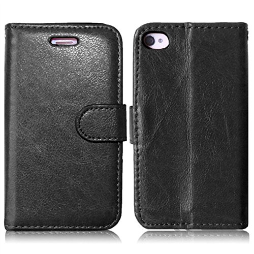Wkae Case Cover Custodia in pelle premium Portafoglio solido di colore basamento della copertura del silicone di caso per iPhone4s ( Color: Black, Size: IPhone4s )