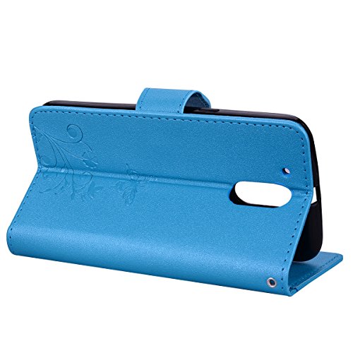 Cover per Moto G4 / Moto G4 Plus, Custodia in Pelle Specchio per Moto G4 / Moto G4 Plus, Flip Case Portafoglio Bella Farfalla Fiori Cover per Moto G4 / Moto G4 Plus, ZCRO Libro Supporto Stand Silicone Morbida Back Cover Caso Pelle Cuoio con Specchio Mirror Porta Carte Protettiva Elegante Copertura Antiurto Completa Custodia Ultra Slim Sottile Wallet Case Moda Bellissime Shell Custodia per Moto G4 / Moto G4 Plus (Blu)