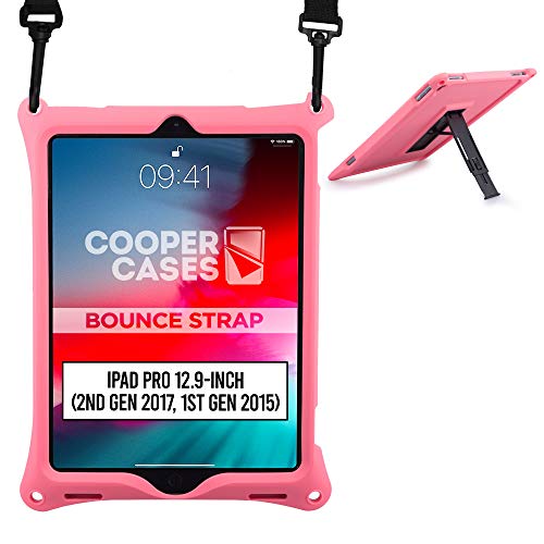 Cover iPad PRO 12.9 1st & 2nd Gen, Custodia Rigida Cooper Bounce Strap Silicone Maxi Protezione Super Resistente Ottima per Bambini Viaggio Auto Supporto Tracolla con Cavalletto, Rosa