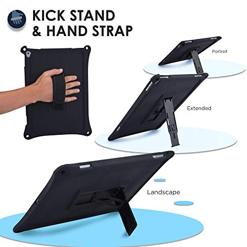 Cover iPad PRO 12.9 1st & 2nd Gen, Custodia Rigida Cooper Bounce Strap Silicone Maxi Protezione Super Resistente Ottima per Bambini Viaggio Auto Supporto Tracolla con Cavalletto, Nero