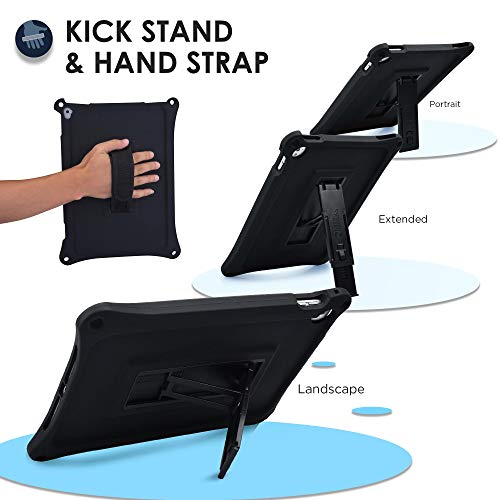 Tracolla rimovibile e supporto integrato: viene fornito con tracolla regolabile, staccabile ed espandibile. Fissare la cinghia a due fori per trasportare il dispositivo in verticale o in orizzontale come una borsa a tracolla / tracolla / imbracatura o fondina. Ha un supporto regolabile / cavalletto per display protetto a mani libere. È anche possibile montare la cinghia sul poggiatesta dell'auto per l'intrattenimento sul sedile posteriore