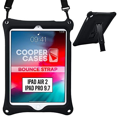 Cover iPad Air 2 / iPad PRO 9.7, Custodia Rigida Cooper Bounce Strap Silicone Maxi Protezione Super Resistente Ottima per Bambini Viaggio Auto Supporto Tracolla con Cavalletto, Nero