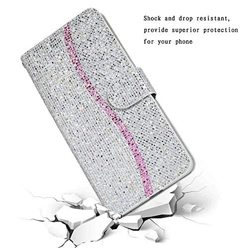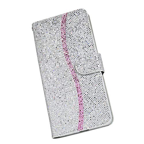 YKTO Cover per Galaxy A12 Brillantini Glitters Argento Sparkle Caso Guscio Shell Wallet PU Glitter Brillanti Strass Magnetico Ladies Purse Women's Case Libro Leather per Samsung Galaxy A12