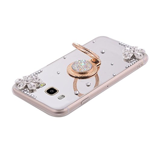 Cover Galaxy J7 2016 Custodia,ikasus [supporto anello] Fiori Strass diamante glitter Bling Placcatura Mirror specchio Custodia Morbida TPU Silicone Gel Custodia Case Cover per Galaxy J7 2016,Argento