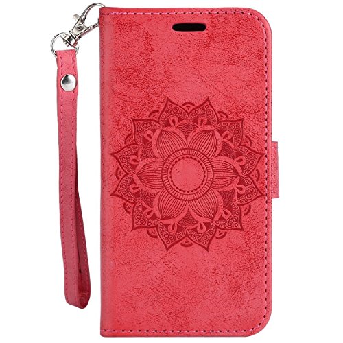 Cover Galaxy S7,Custoida Galaxy S7,Galaxy S7 Custoida Cover in Pelle PU,Uposao Flip Libro PU Leather Cover Wallet Supporto Case Con Fiore di Mandala Modello Coperture per Samsung Galaxy S7-(Rosso)