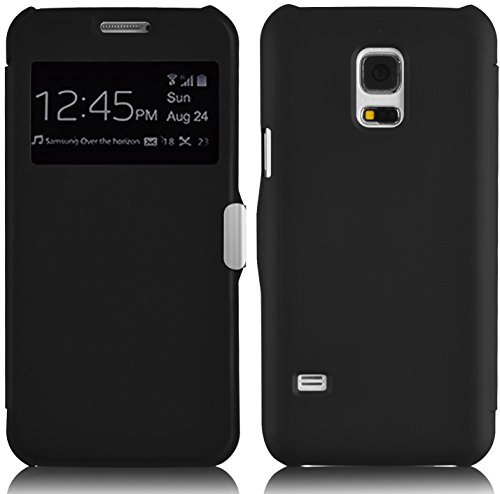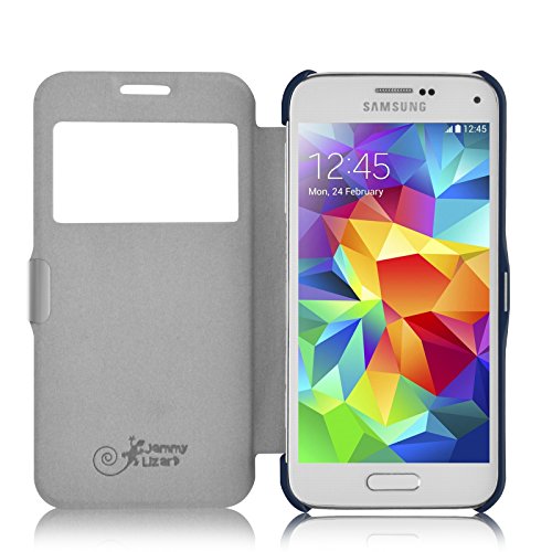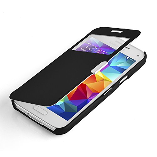Flip Cover Galaxy S5 Mini, JAMMYLIZARD Custodia in Poliuretano e Microfibra con Finestrella per Samsung Galaxy S5 Mini, NERO