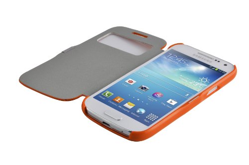 Flip Cover Galaxy S4 Mini, JAMMYLIZARD Custodia in Poliuretano e Microfibra con funzione S-View per Samsung Galaxy S4 Mini, ARANCIONE