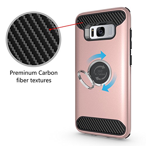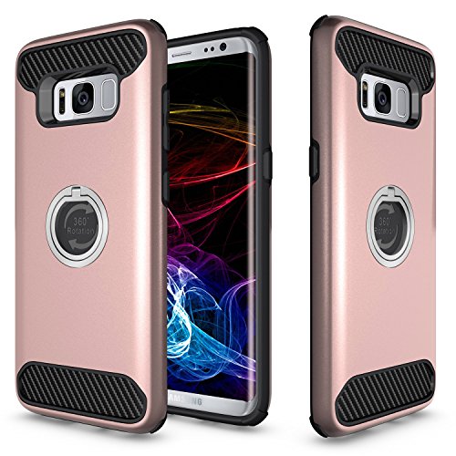 Cover Galaxy S8, PEMOTech Scatola Protettiva per Samsung Galaxy S8 (2017), con Ammortizzamento Anti-perso Hard PC Shell & Morbido Silicone Interno & Manico a forma rotante 360 gradi con cavalletto (Oro Rosa)