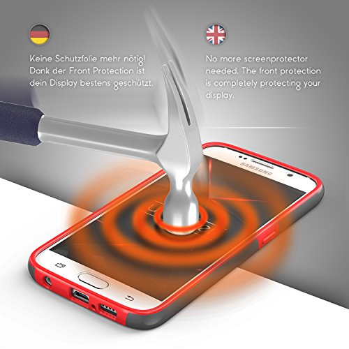 Cover Galaxy S6, Urcover Nuova Touch Case Platin 2017 [ Protezione 360° Totale ] Custodia Samsung Galaxy S6 Integrale Fronte Retro Semi Rigida [ Antiurto Migliorato ] UltraSottile Bumper Trasparente di Colore Grigio / Rosso