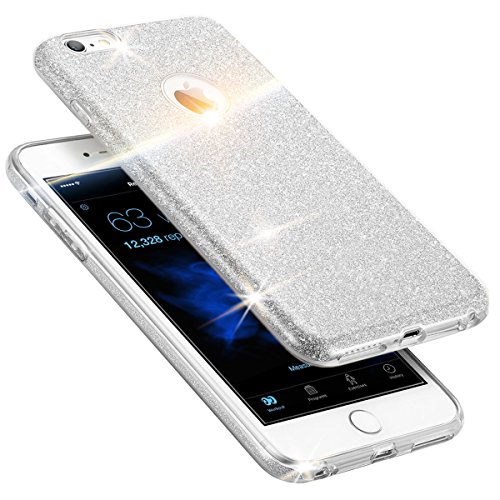 Ego® Cover Glitter Custodia per iPhone, Huawei Back Case Bumper TPU Trasparente Lucido Bling Custodia/Borsa Cover Glamour Argento Argento für iPhone 7 Plus