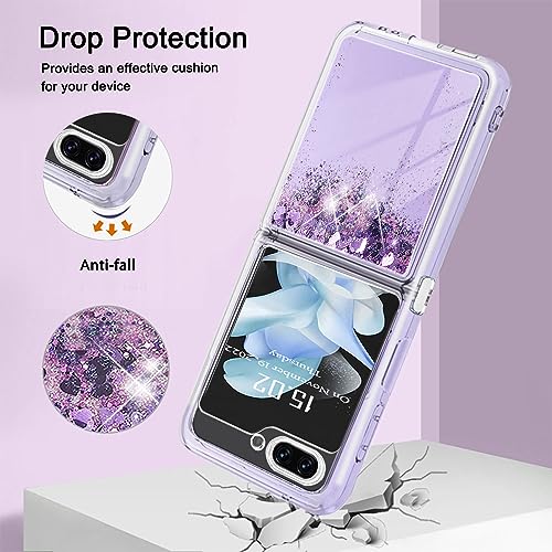 Cover Glitter per Samsung Galaxy Z Flip 5 Custodia, Brillantini Liquido Quicksand Bling Custodia Ultra Sottile Morbido Silicone Trasparente Antiurto Protettivo Case per Samsung Galaxy Z Flip5, Viola