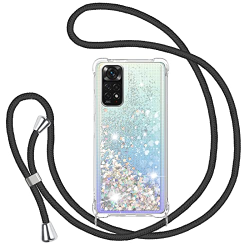 Cover Glitter per Xiaomi Redmi Note 11 4G/Note 11S 4G 6.43'' con Cordino, Custodia Brillantini Liquido con Collana Ultra Sottile Silicone Trasparente Protettivo Case per Cellulare Cordoncino -Nero