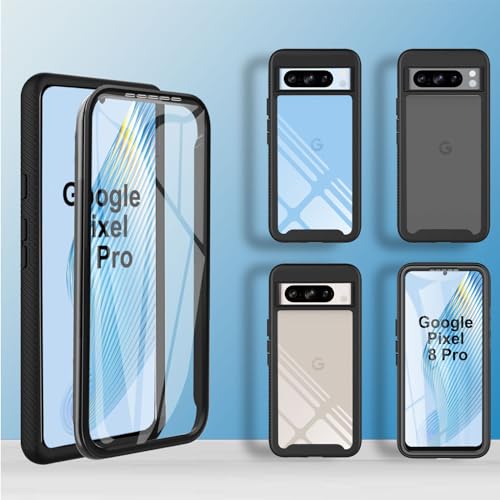 Cover per Google Pixel 8 Pro Antiurto Custodia per Pixel 8 Pro 360 Gradi con Protezione dello Schermo Integrata Rugged Full Body Protettivo Case Trasparente Bumper Cover per Google Pixel 8 Pro, Nero