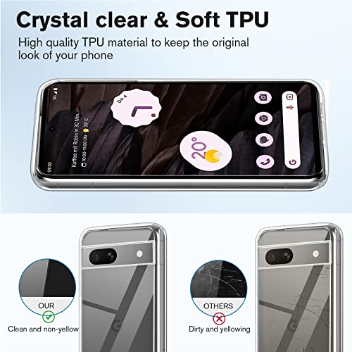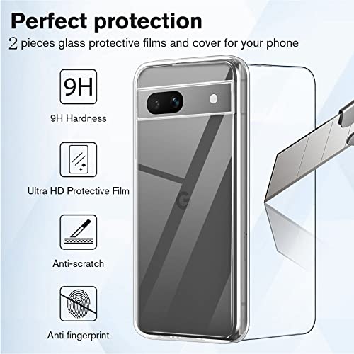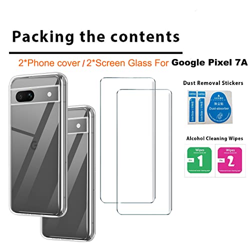 Cover per Google Pixel 7A [2Pcs + 2Pcs] Pellicola Protettiva - Morbida Trasparente Silicone Bumper Case TPU Protettivo Copertura Custodia 9H vetro temperato