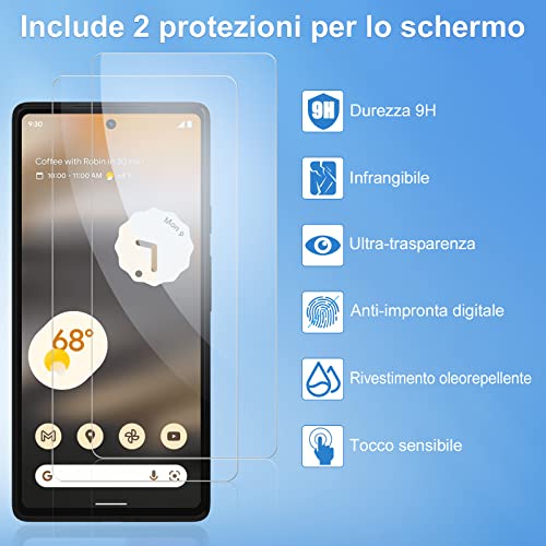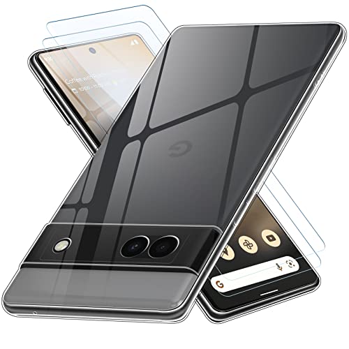 Cover per Google Pixel 6a con 2 Pezzi Pellicola Vetro Temperato, Trasparente, Anti Ingiallimento, Silicone morbido TPU, Custodia dal Assorbimento degli Urti, Clear Case