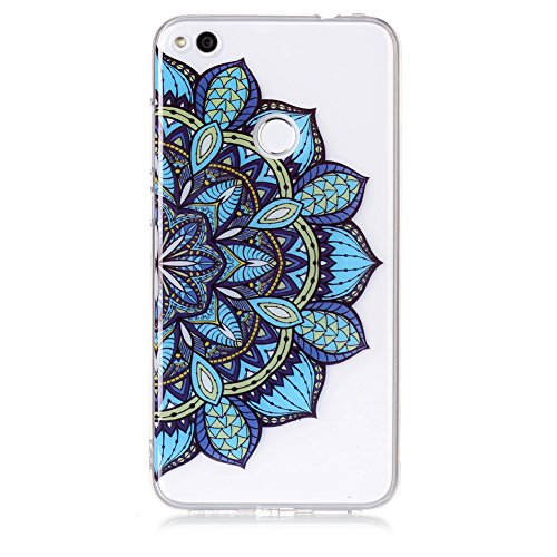 Cover Per Hauwei P8 Lite 2017 Silicone Custodia Morbida Trasparente con Disegno Farfalla Colorata Fiore,Funyye Cristallo Chiaro Sottile Leggero Flessibile Antiurto Antiscivolo Originale Gel Gomma Protettivo Caso + Pellicole protettive Per Hauwei P8 Lite 2017 Modello Slim Thin Skin Shell Bumper - Fiore blu