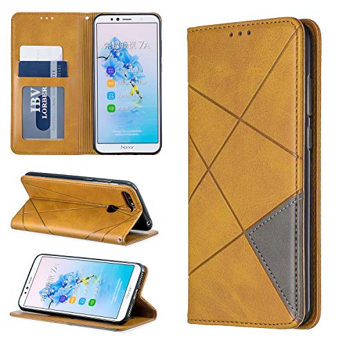 OATE Cover per Honor 7A Custodia Case Libro Style in Pelle Cover Portafoglio Protettiva Slot per Schede Pelle PU Superficie Opaca Chiusura Magnetica Stand per Huawei Y6 2018/Y6 Prime 2018,Oro