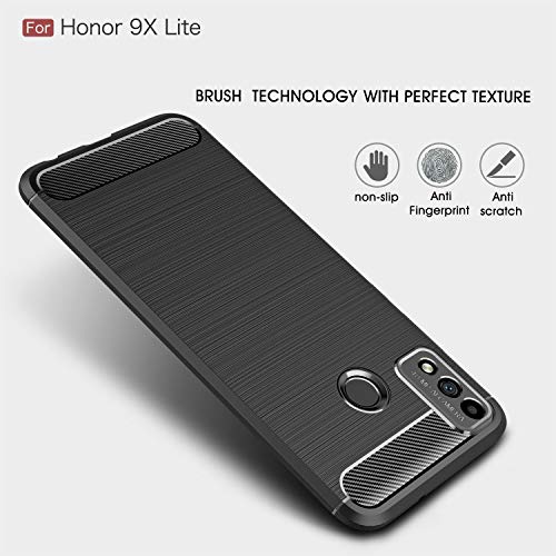 Cover per Honor 9X Lite + Pellicola Protettiva in Vetro Temperato, Weideworld Custodia Robusta per Armature Cover in Silicone Morbido e Sottile per Honor 9X Lite, Nero