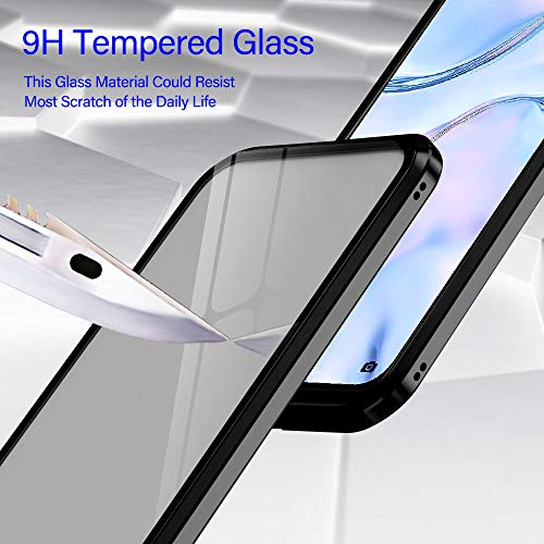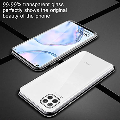 Cover Huawei P40 Lite, Adsorbimento Magnetico Custodia per Huawei P40 Lite (2020), E-Lush Case 360 Gradi Doppi Lati Trasparente Vetro Temperato Caso Metallo Schermo Intero Flip Cover, Nero