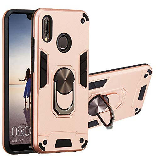 NR Cover Huawei P20 Lite 2019 / Nova 5i, 2 in 1 Armour Hybrid Dual Layer Armatura Defender PC + TPU Bumper Silicone Custodie con 360° Girevole Ring Supporto per Huawei P20 Lite 2019 - Oro Rosa