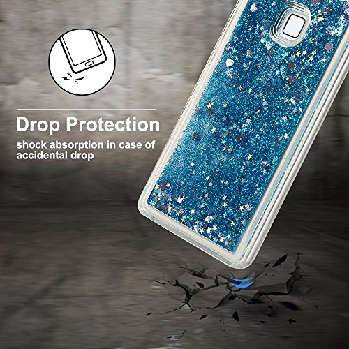 Cover Huawei P9 Lite, CaseLover 3D Bling Sabbie Mobili Trasparente Morbido TPU Silicone Custodia per Huawei P9 Lite Brillantini Sequin Cristallo Posteriore Copertura Liquido Fluttuante Quicksand Shinny Scintillio Sparkle Glitter Protettiva Case Anti-graffio Caso (5.2 Pollici) - Blu