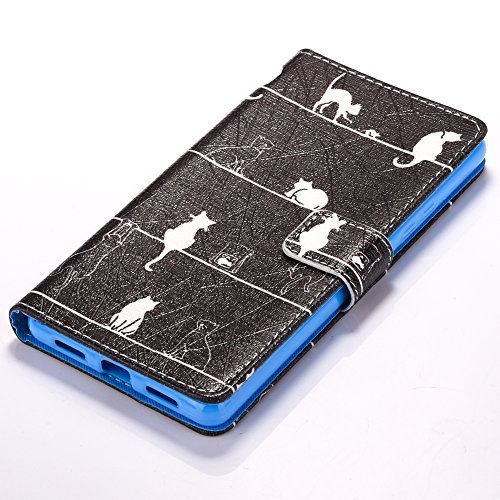 Cover Huawei P9 Lite, Custodia Alfort 3 pezzi Portafoglio Libro Protective Case Flip Copertina PU pelle per Huawei P9 Lite con Chiusura Magnetica e Funzione di Supporto per Huawei P9 Lite 5.2" Smartphone + Toccare Stylus Nera + Spina di Polvere ( malizioso gatto )