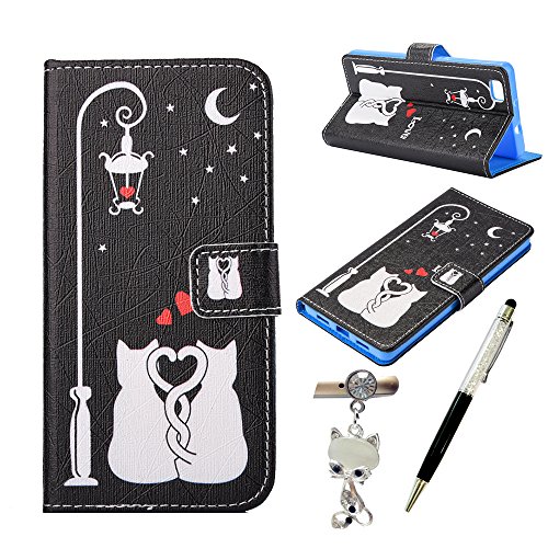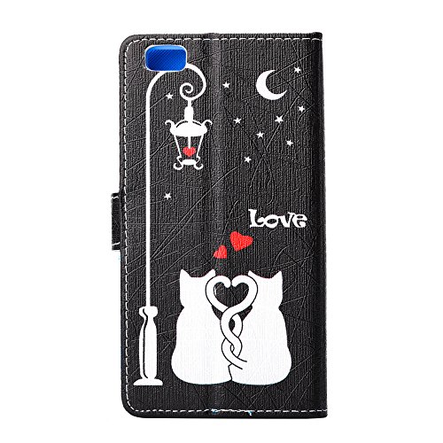 Cover Huawei P8 Lite, Custodia Alfort 3 pezzi Portafoglio Libro Protective Case Flip Copertina PU pelle per Huawei P8 Lite con Chiusura Magnetica e Funzione di Supporto per Huawei P8 Lite 5.0" Smartphone + Toccare Stylus Nera + Spina di Polvere ( amanti dei gatti )