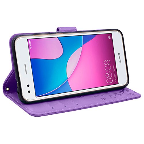Cover Huawei Y6 Pro 2017 Custodia, Leathlux Retro Design Con Cinturino da Polso Magnetico Snap-on Case in pelle Protettiva Flip Cover per Huawei P9 lite mini/ Huawei Y6 Pro 2017 5.0" Luce viola
