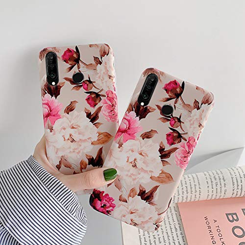 Cover Huawei P30 Lite,Custodia Huawei P30 Lite Modello dipinto fiori foglie banana Ultra Sottile Morbido Silicone Custodie Protettivo Crystal TPU Gel Cover Custodia Case Cover,Fiore Di Peonia