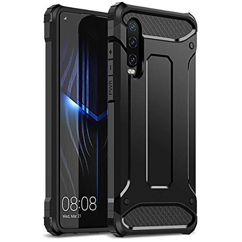 WE LOVE CASE Cover per Huawei P30 Custodia Robusto et Resistente Protezione Doppio Strato Hard PC + Soft Silicone Bumper Armatura Sottile AntiGraffio Antiurto Protettiva Case per Huawei P30 - Nero