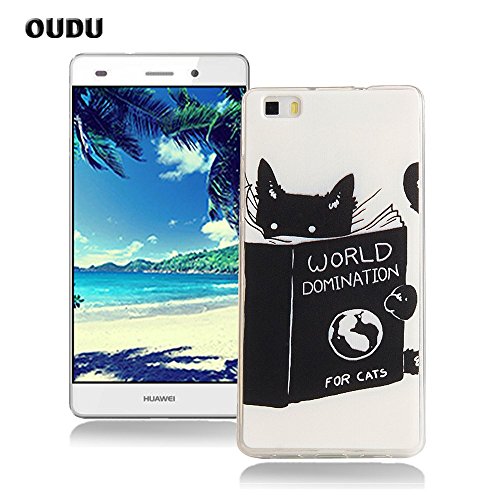 OuDu Cover Huawei P8 Lite Custodia TPU Silicone Cassa Gomma Soft Silicone Case Bumper Custodia Morbida Cover Ultra Sottile Leggero Custodia Flessibile Liscio Caso Anti Graffio Anti Scossa Anti Scivolo - Gatto Carino