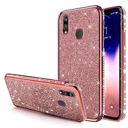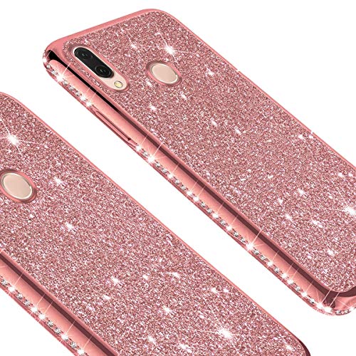 Cover Huawei P20 Lite,Custodia Huawei P20 Lite,Ultra Sottile Bling Scintillio Lucido Glitter Diamanti Strass Placcante Morbido Silicone TPU Gel Custodia Case Cover per Huawei P20 Lite,Oro rosa