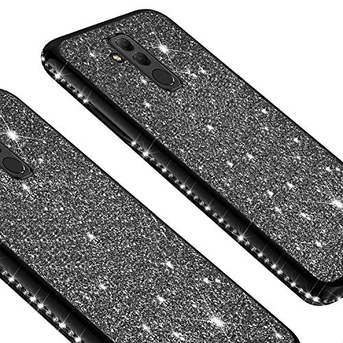 Cover Huawei Mate 20 Lite,Custodia Huawei Mate 20 Lite,Ultra Sottile Bling Scintillio Lucido Glitter Diamanti Strass Placcante Morbido Silicone TPU Gel Custodia Cover per Huawei Mate 20 Lite,Nero
