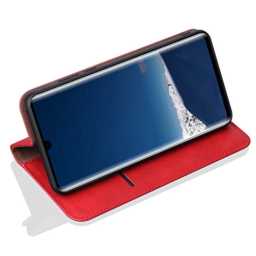 Moda Cover per Huawei P30 Pro, DaGeLon Semplice Elegante Libro Custodia Retro Vestibilità Perfetta Cassa Flip Attrazione Magnetica Case Resistente Agli Urti Caso Robusta Pelle Raffinato, Rosso