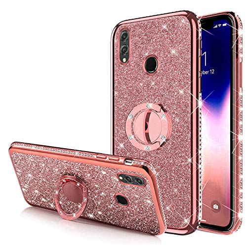 Cover Huawei Honor 8X Max,Custodia Honor 8X Max,[Anello supporto] Bling Scintillio Lucido Glitter Diamanti Strass Placcante Morbido Silicone TPU Gel Custodia Cover per Huawei Honor 8X Max,Oro rosa