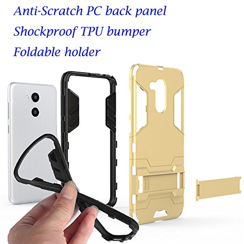 Cover Huawei Honor 6C Pro, GOGME [Tough Armor Series] Robusto Pannello Posteriore PC Antigraffio + Paraurti Antiurto TPU+ Pratico cavalletto, Blu