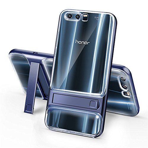 Cover Huawei Honor 9,SMTR Dual Layer Custodia ibrida Rigida Morbido Armatura resistente agli urti con Supporto e asportabile di protezione per Huawei Honor 9, trasparente blu