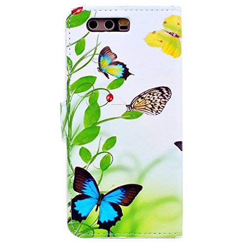 Cover per Huawei Honor 9 Libro Mariposa Verde con Disegni, SMART LEGEND Flip Cover Honor 9 con Portafoglio Card Slot Pelle Premium e Silicone TPU Case Fantasia, Caso Supreme Ultra Slim Stand Design con Chiusura Magnetica