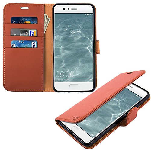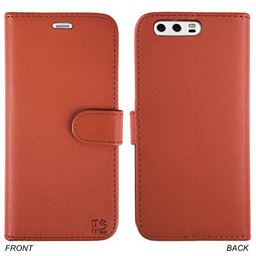 COVER Huawei P10, Kings Hark [Funzione di supporto] Huawei P10 Custodia Protettiva in Pelle PU Flip Case con slot per schede integrato, slot e supporto per Huawei P10 Pelle della serie PU braun