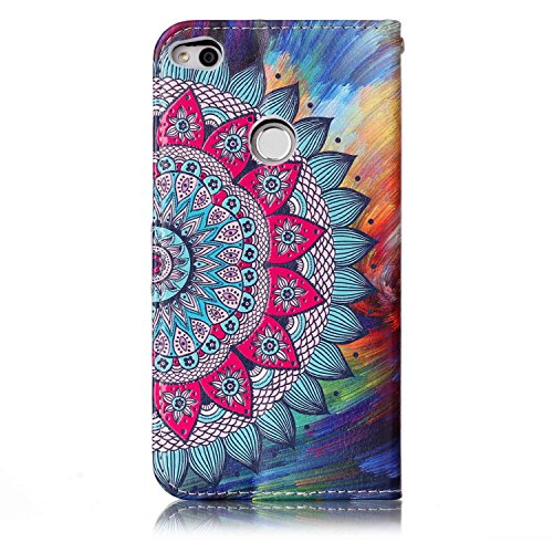 Cover per Huawei P8 Lite 2017 Flip Libro,(Non per P8 Lite Vecchia Versione) BtDuck Ultra Slim PU Pelle Borsa e Portafoglio Tasca Progettato Creativo Sollievo Colorato Modello Relief Vento Nazionale Libro Stand Case Cover Morbido Silicone Back Case Bumper Cover Custodia in Premium Portafoglio Magnetica Disegno Flip Cover per Huawei P8 Lite 2017 Telefono Morbida Anti-Theft Wallet Case per Donna Ragazza Ragazzo Uomo con Bookstyle Protezione Case + 1x Nero Stylus Penna - Mandala Colorato Fiore