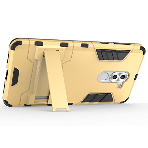 Cover per Huawei Mate 9 Lite/Honor 6X (5,5 Pollici) 2 in 1 Hybrid Dual Layer Completamente Shock Resistente Armour con Cavalletto Funzione Custodia (Golden)