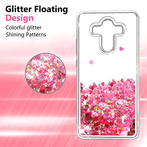 Cover Huawei Mate 10 Pro [con Pellicola Proteggi Schermo],OKZone 3D Glitter Liquido TPU Cover,Brillantini Fluttuante Quicksand Scintillio Bling Protettiva Custodia per Huawei Mate 10 Pro (Cuore Rosso)