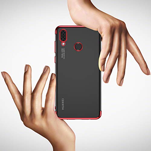 KuGi Cover Huawei PSmart+, Huawei PSmart+ Custodia Trasparente Silicone Cover Morbida TPU Caso, Anti Scivolo& Anti-urto Case per Huawei PSmart+(Rosso)
