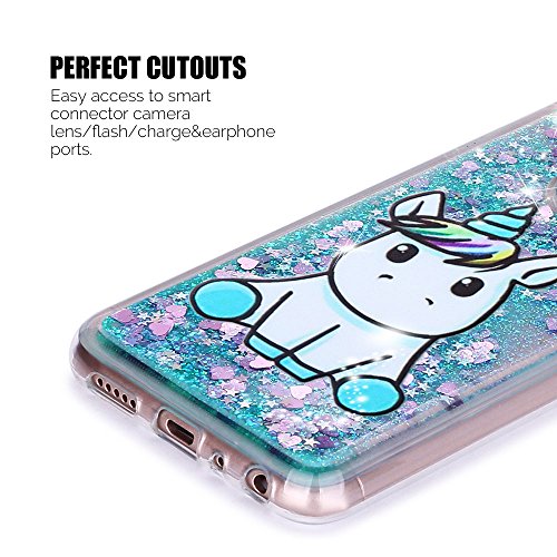 Cover Huawei P Smart Brillantini, RosyHeart Morbido Trasparente Cellulare Custodia Brillante Liquido Silicone Unicorno Protettivo Bumper per Huawei P Smart 5.65" - Verde menta